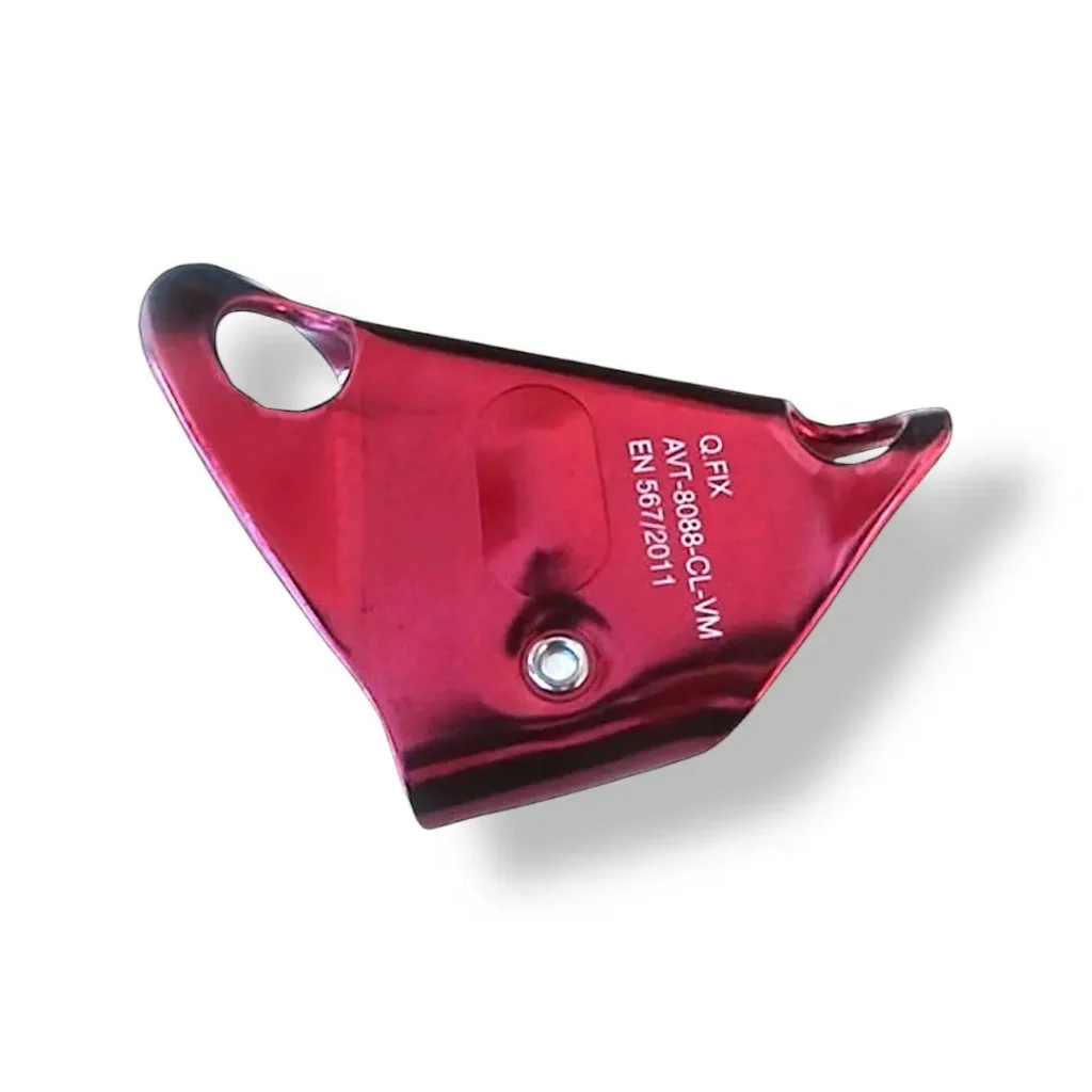 Utilizado em complemento com os Ascensores Blocantes de punho para subidas em corda fixa simples de 8 mm a 13 mm de diâmetro. Mordente com pinos para otimizar o bloqueamento na corda. Forjado em aluminío alloy – Norma EN 567. Acabamento anodizado vermelho.