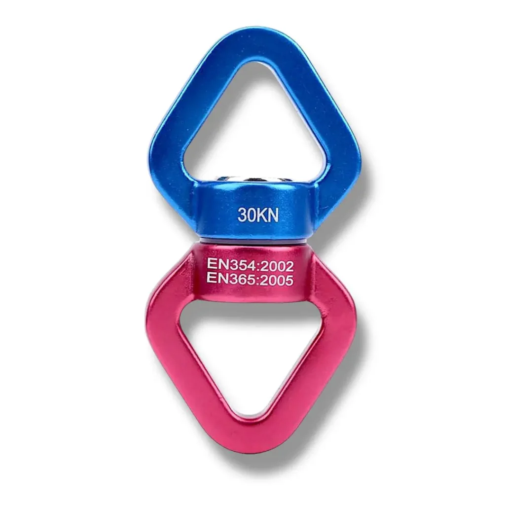 Destorcedor Giratório para cordas, utilizado para as mais diversas atividades em altura, tanto para a prática de esportes Adventure como na área de resgates. Destorcedor Giratório com rolamento. Forjado em aluminío alloy – Norma EN 354. Acabamento anodizado.