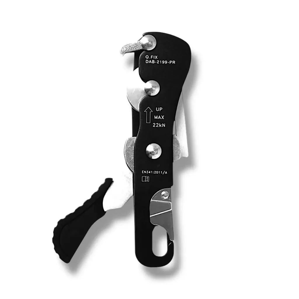 Ascensor Blocante para punho esquerdo, utilizado para subidas em corda fixa simples de 8 mm a 13 mm de diâmetro. Mordente com pinos para otimizar o bloqueamento na corda. Forjado em aluminío alloy – Norma EN 567. Acabamento anodizado.