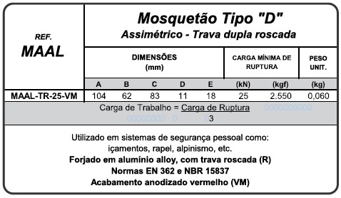 Utilizado em sistemas de segurança pessoal como: içamentos rapel, alpinismo e etc.