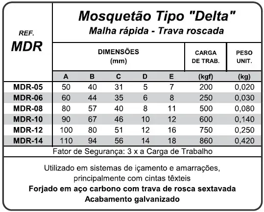 Utilizado em sistemas de içamentos e amarrações, principalmente de cintas têxteis.