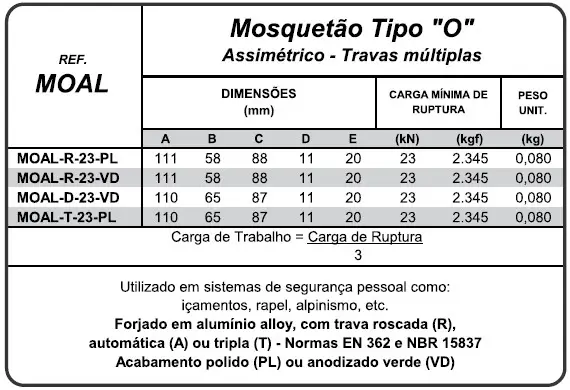 Mosquetão Tipo “O” – Assimétrico – Trava Múltiplas – MOAL-PL
