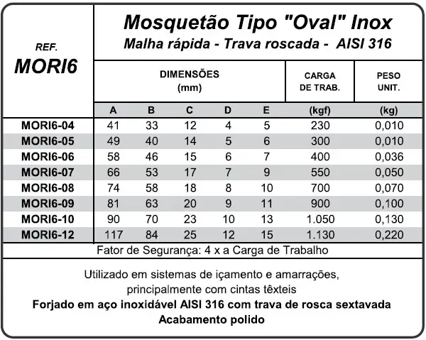 Utilizado em sistemas de içamentos e amarrrações, principalmente com cintas têsteis.