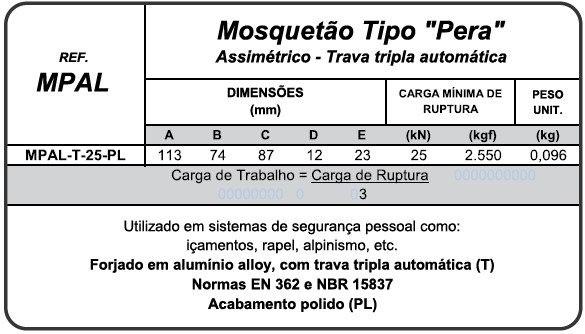 Utilizado em sistemas de segurança pessoal como: oçametos, rapel, alpinismo e etc.