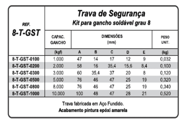 Trava de Segurança – Kit para gancho saldável – grau 8 – 8-T- GST